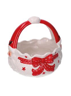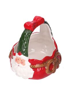 Cesto in Ceramica Babbo Natale Bianco e Rosso