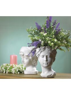 Vaso in Resina Alto Graffiato Bianco