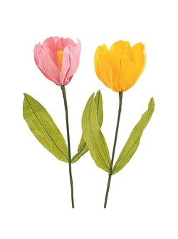 Set 2 Rose Gialle in Carta con Base