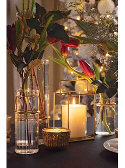 Lanterna in Lino Avorio con Portacandela in Vetro