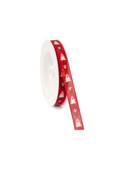 Nastro Tessuto Rosso Alberi e Santa Claus