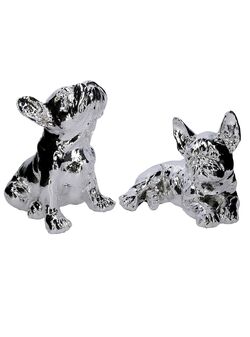 Cane in Resina Bulldog Argento Seduto