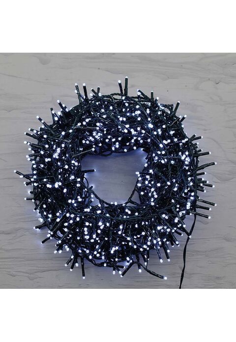 Prolunga da 3 metri. Trasformatore incluso IP44 per uso Interno/Esterno. Filo verde e giochi luce fredda a bassa tensione. Led da 3 mm e distanza tra led 2 cm - Funzione memory. Scatola inclusa.