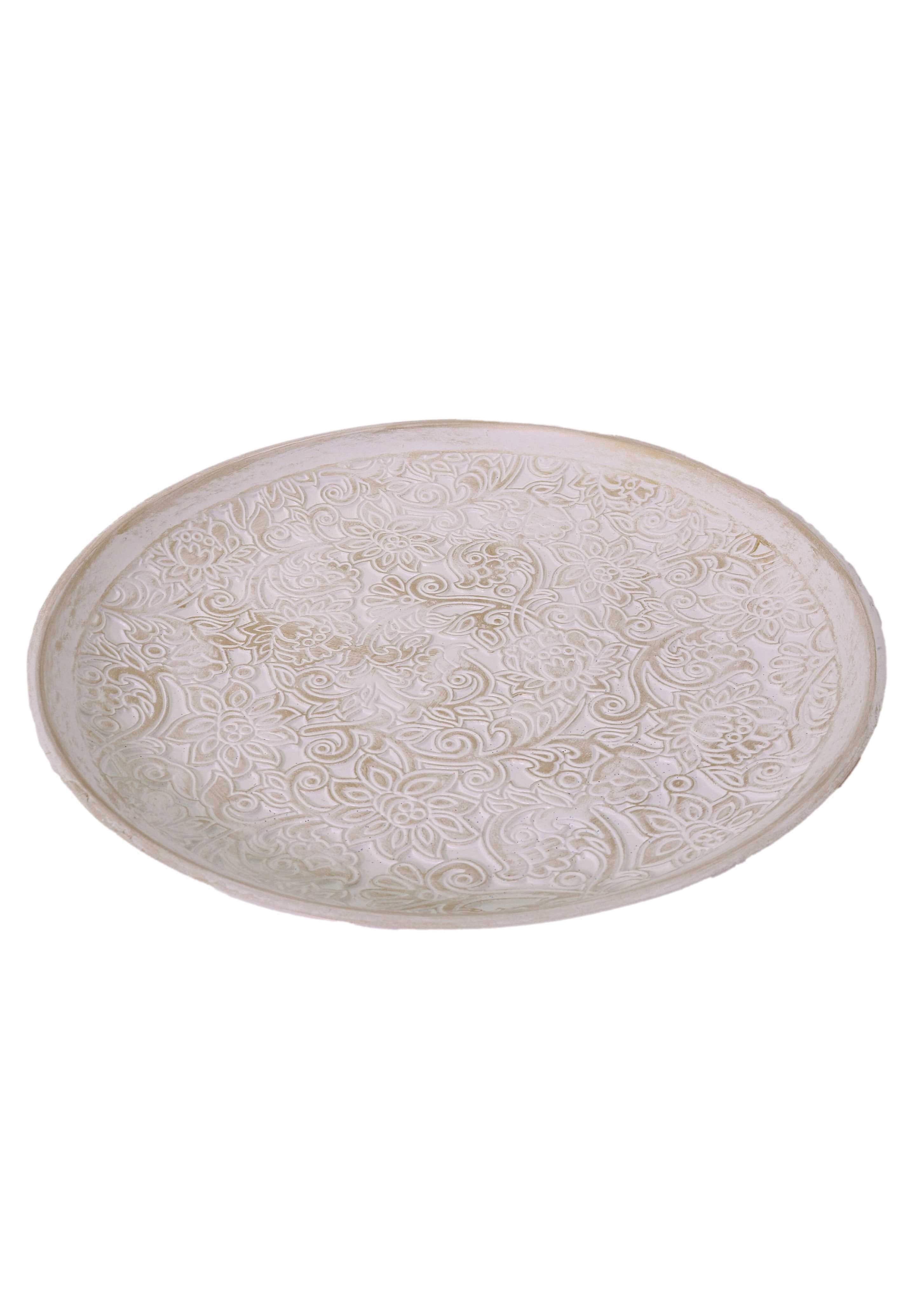 Centrotavola Tondo in Legno Bianco con Decoro