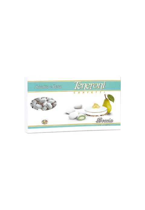 Mandorla tostata ricoperta da uno strato di cioccolata al gusto di ricotta e pere e avvolta da una morbida pasta confettata.