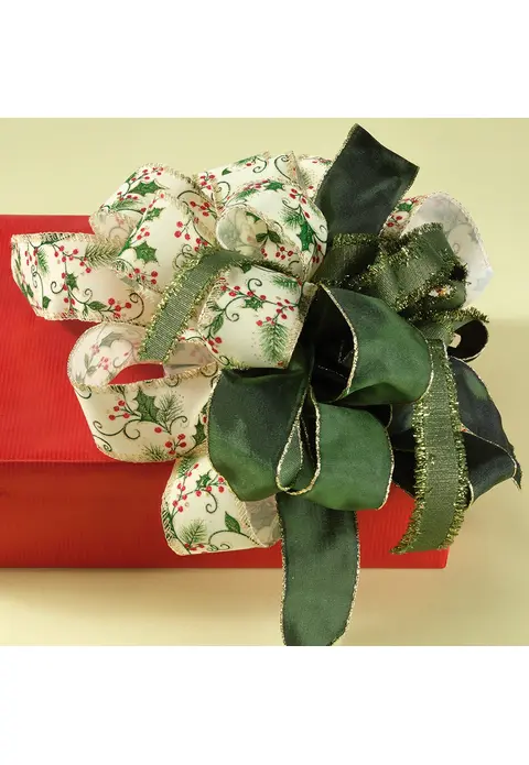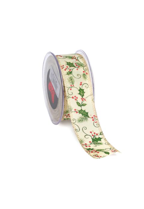 Nastro Tessuto Vischio/Agrifoglio Verde con Stelline Oro