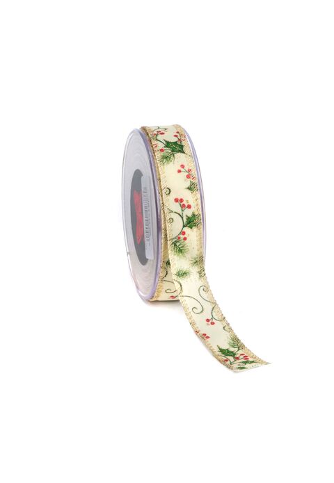 Nastro Tessuto Vischio/Agrifoglio Verde con Stelline Oro