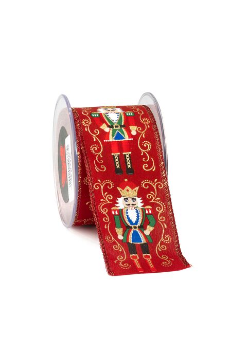 Nastro Tessuto Animato Rosso con Pini Dorati
