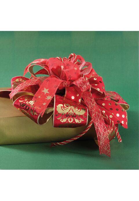 Nastro Tessuto Animato Rosso con Pini Dorati