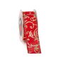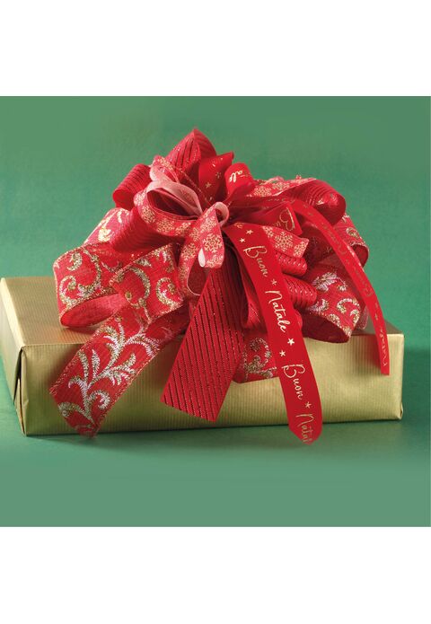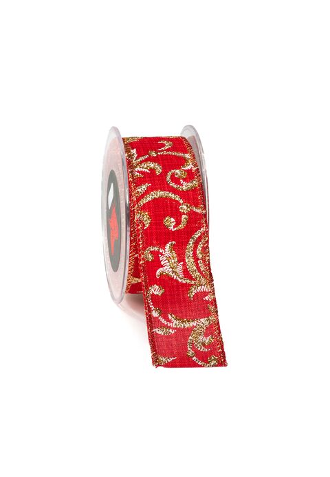 Nastro Tessuto Animato Rosso con Pini Dorati