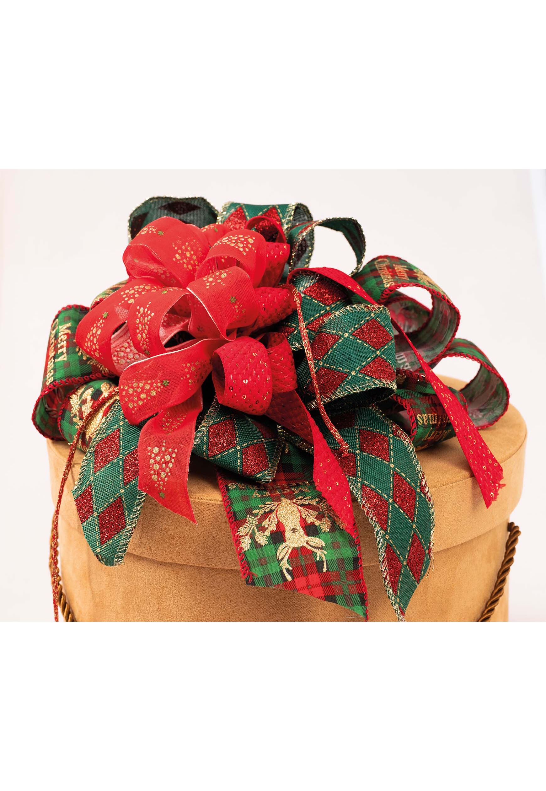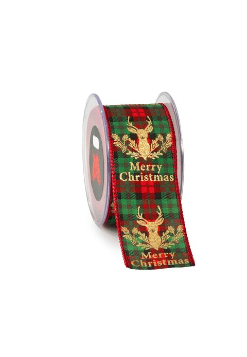 Nastro Tessuto Animato Tartan Alce D'oro "Merry Christmas"