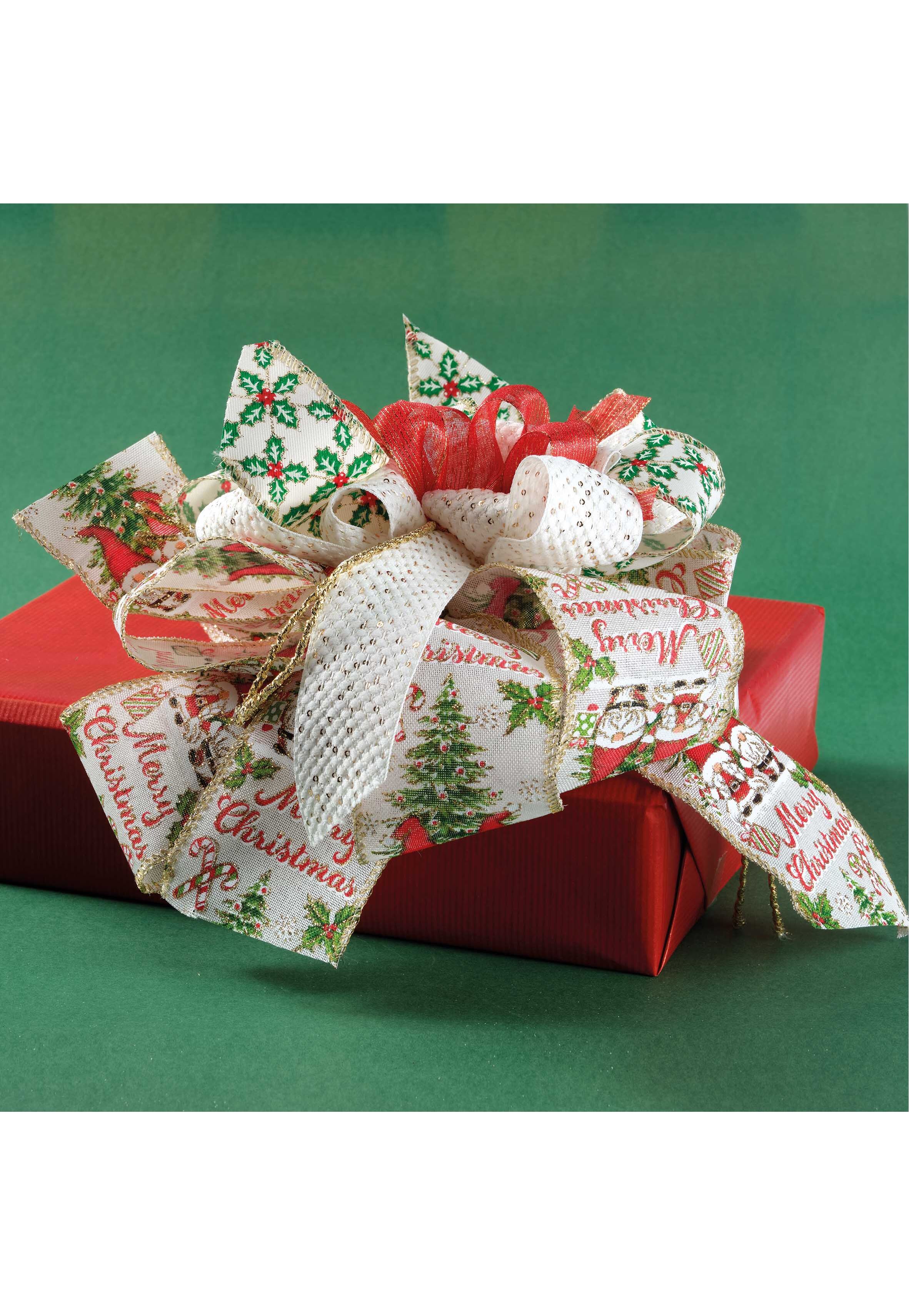 Nastro Tessuto Vischio/Agrifoglio Verde con Stelline Oro