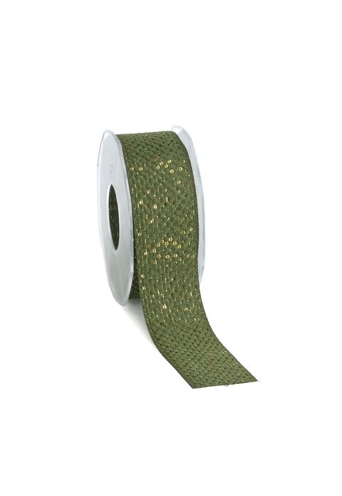Nastro Tessuto Vischio/Agrifoglio Verde con Stelline Oro