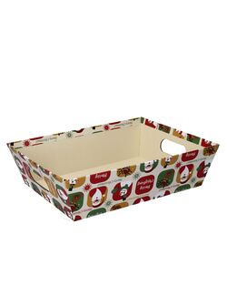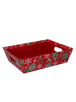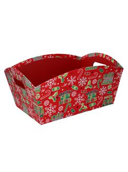 Cesta stondata in cartone rosso Fiocchi di Neve