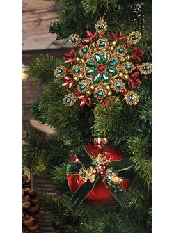 Fiocco di neve appendibile con gemme oro/verde/rosso