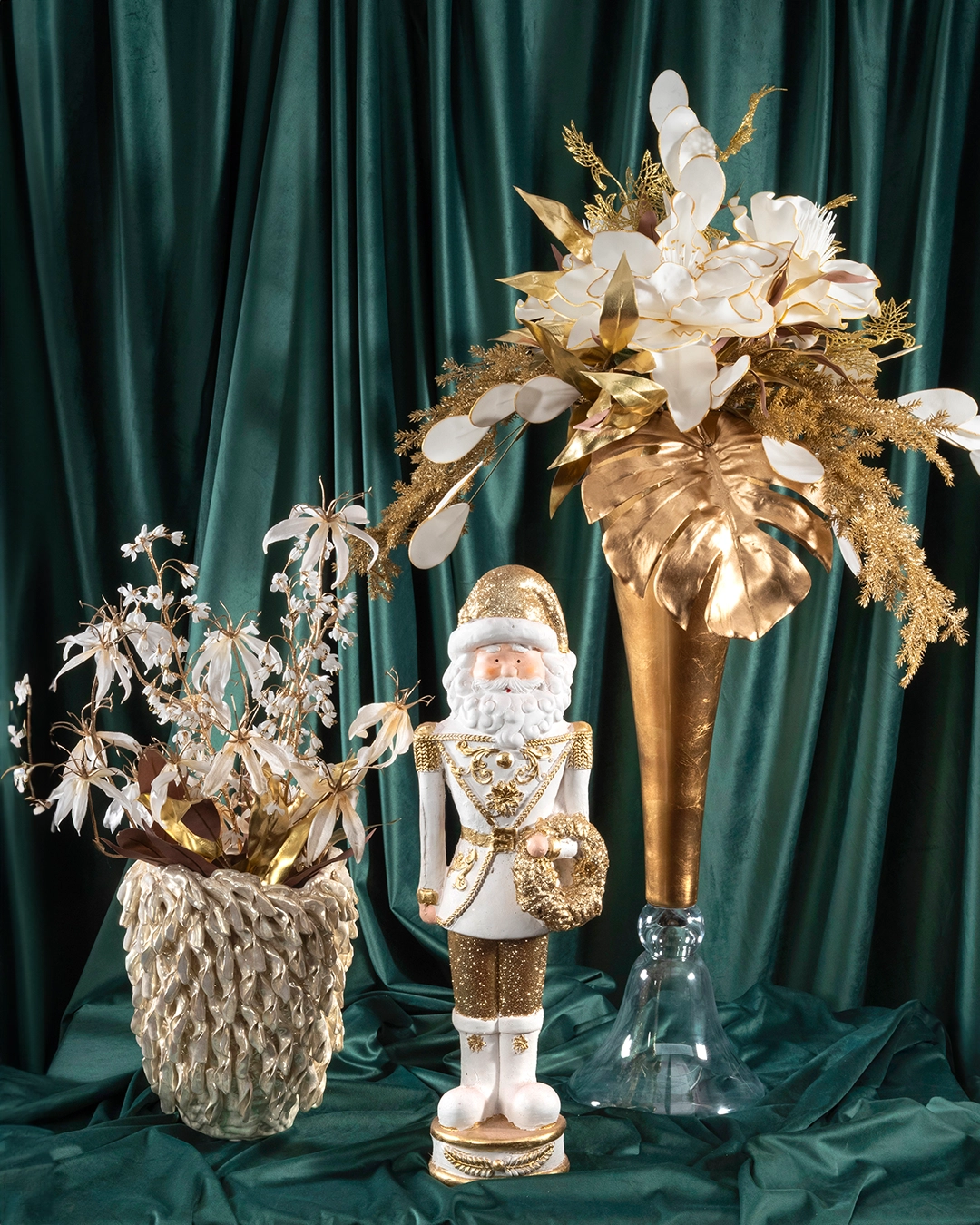Sfera in Plastica Cipolla Bianca a Coste Dorate Appendibile