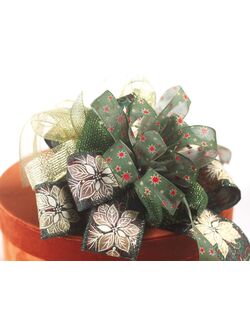 Nastro Tessuto Rosso con Fiocchi di Neve Oro e Glitter