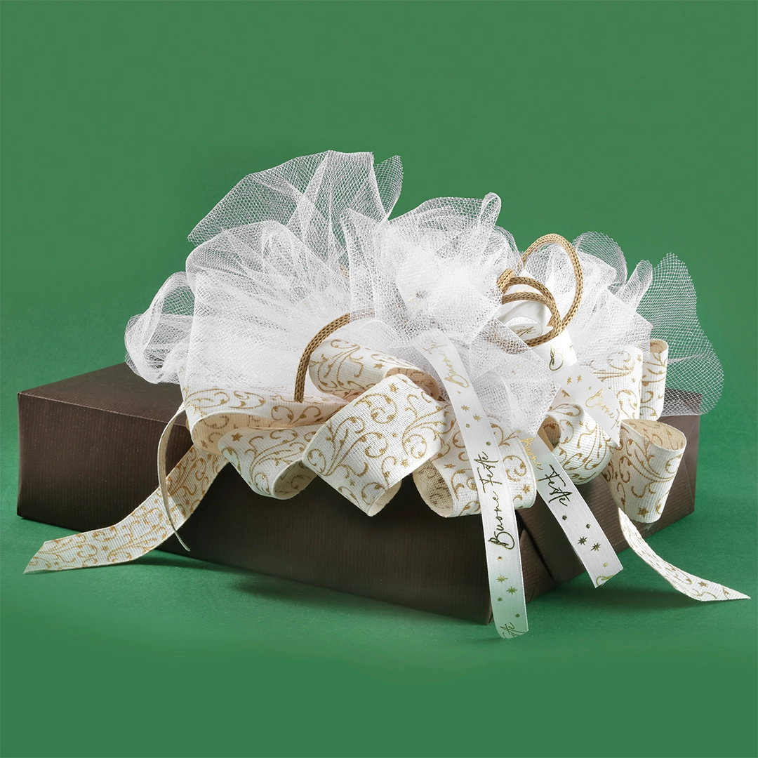 Nastro Policotone Bianco "Buone Feste"