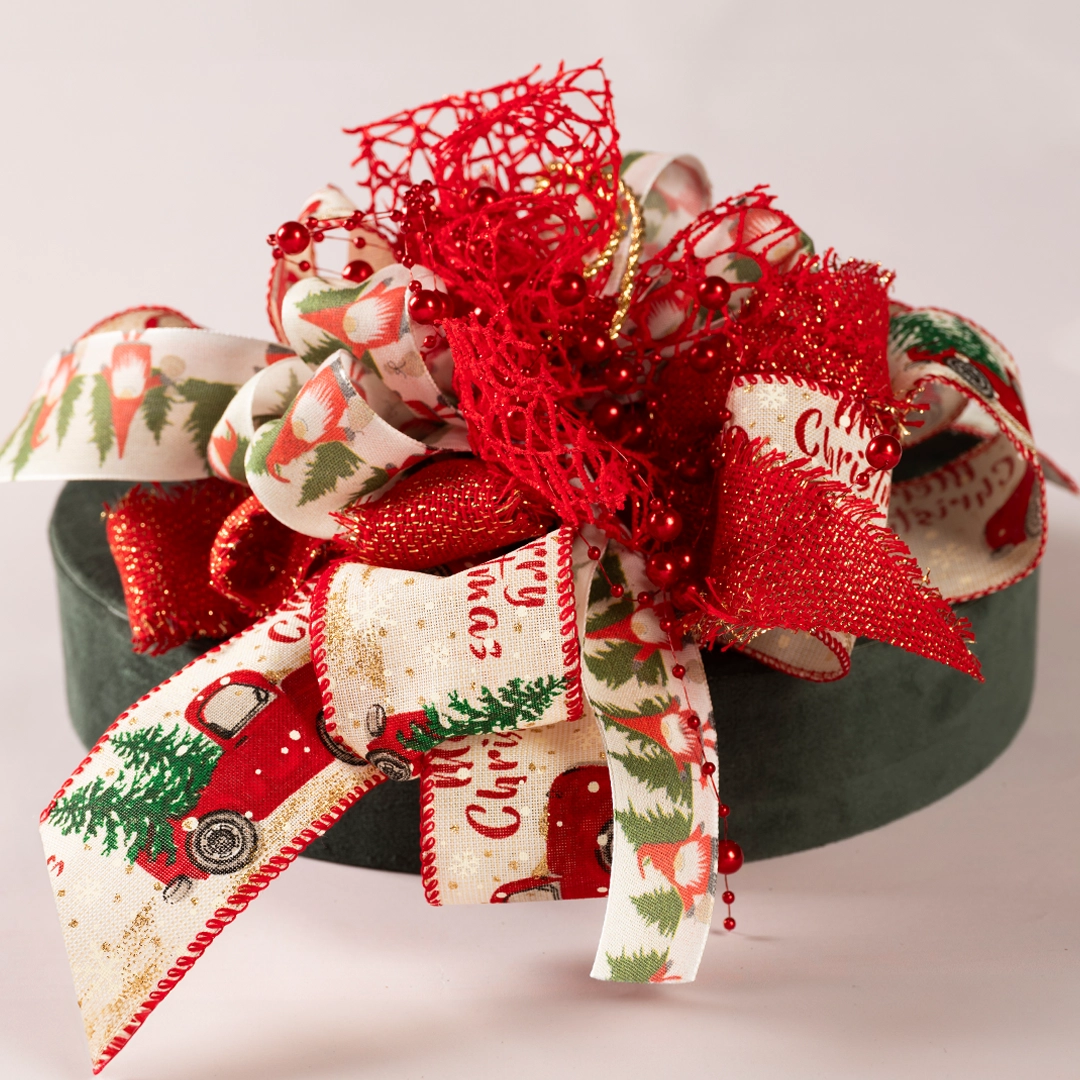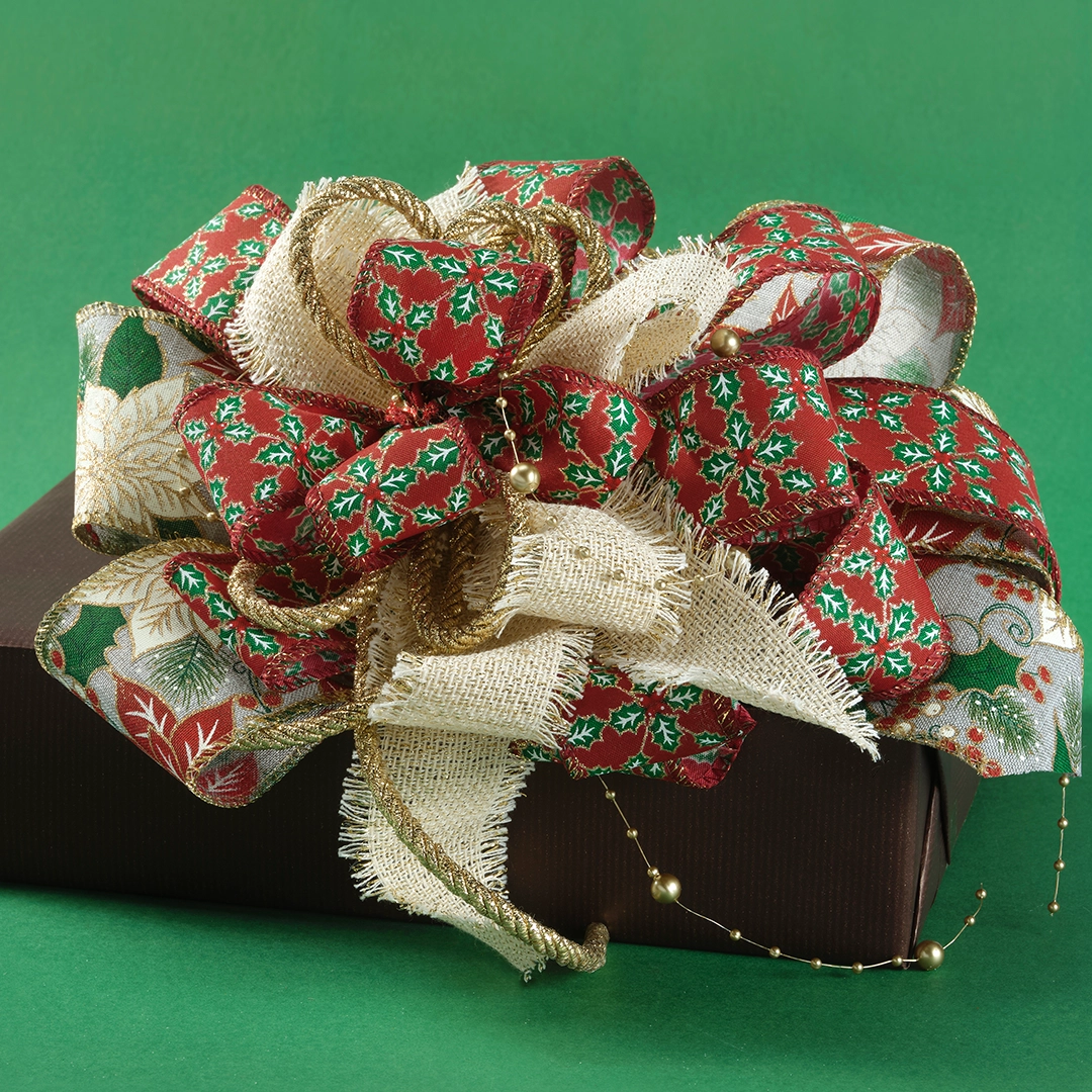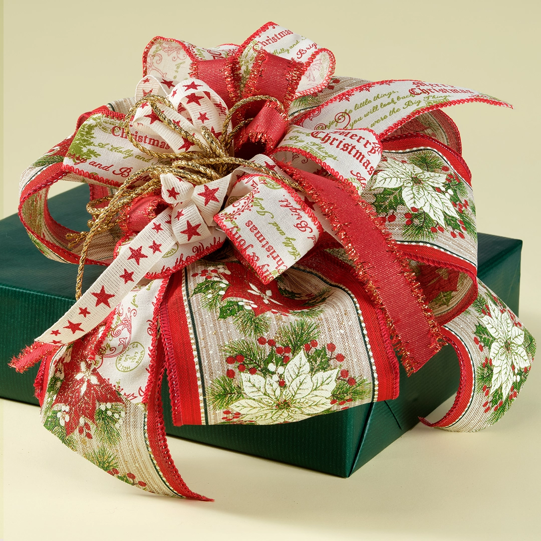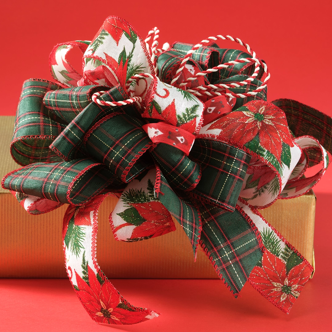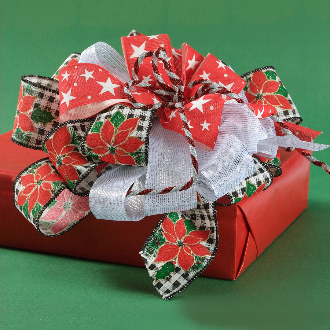 Nastro Tessuto Animato Poinsettia Bordeaux