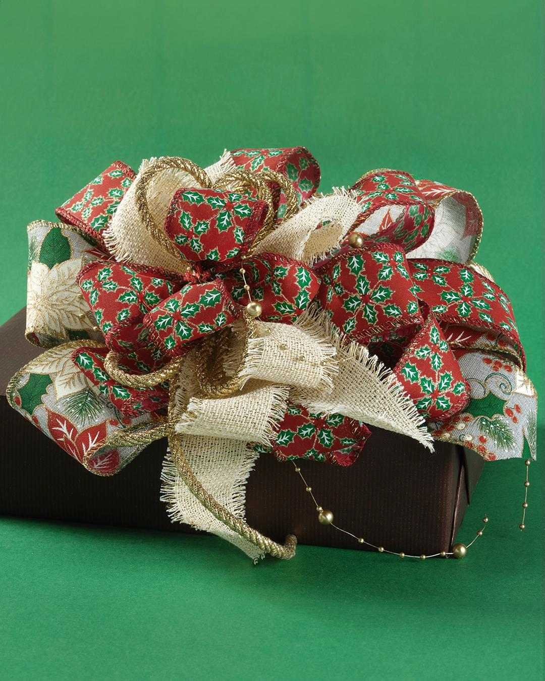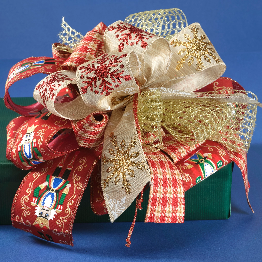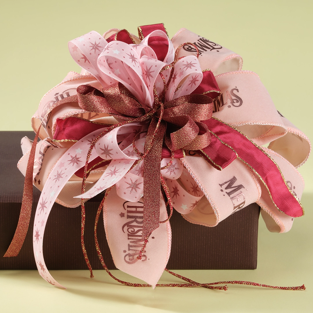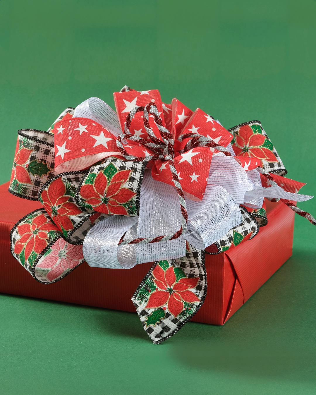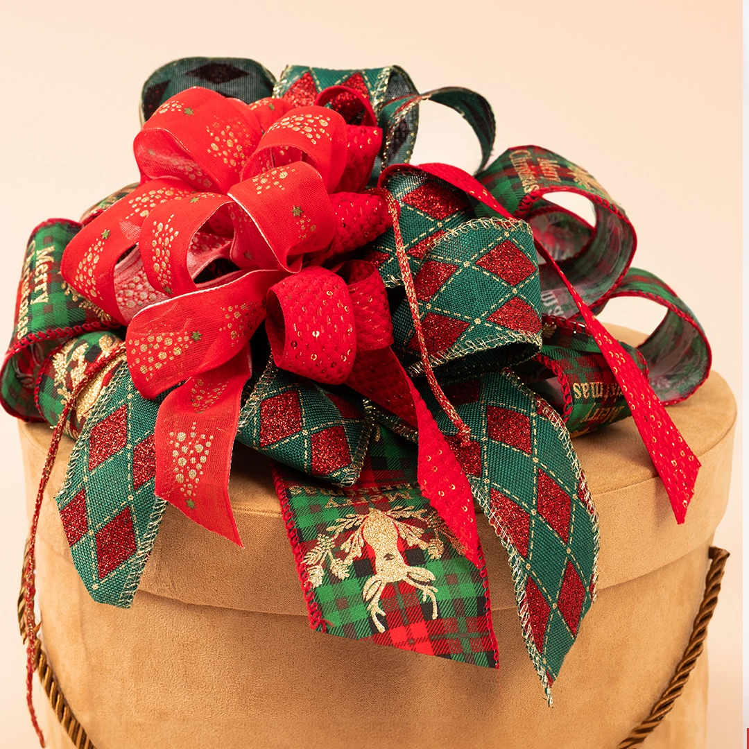 Nastro Tessuto Animato Poinsettia Bordeaux