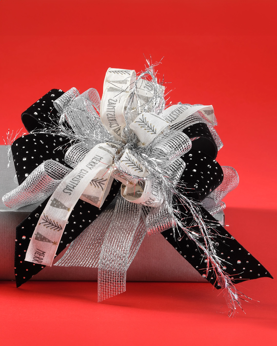 Nastro Tessuto Animato Bianco/Grigio "Merry Christmas"