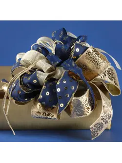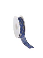 Nastro Tessuto Rustico con Foglie Blu/Oro