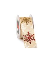 Nastro Tessuto Winter Pattern Bianco con Glitter Oro
