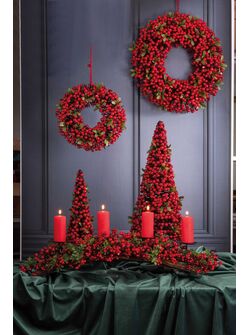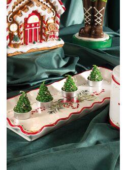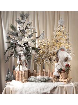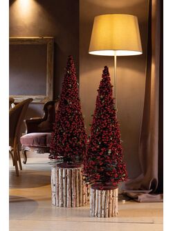 Set Alberi in Panno Verde su Base di Legno Bianca
