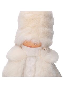 Bambina Seduta in Tessuto con Pelliccia Bianca