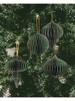 Albero in Carta Nido d'Ape Verde con Cordino e Stella Oro