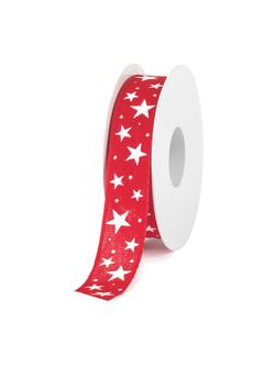 Nastro Tessuto Rosso Stelle Bianche