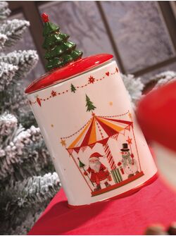 Barattolo in Ceramica Bianco/Rosso Santa con Coperchio