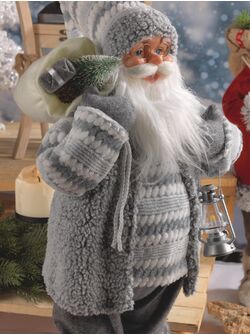 Santa Claus in Tessuto Grigio con Lanterna