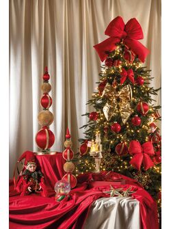 Nastro Tessuto Animato Rosso con Pini Dorati