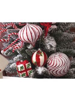 Sfera in Plastica Linee Bianche e Rosse Appendibile