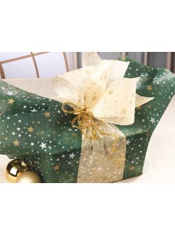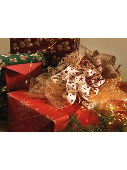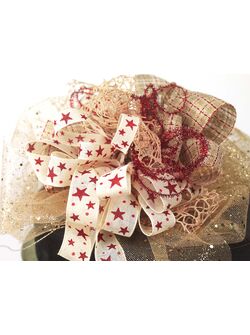 Nastro Tessuto Crema Stelle Rosse con Glitter