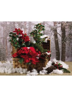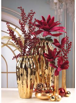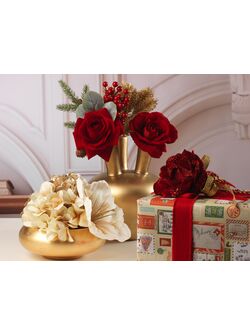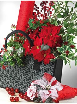 Ramo con 3 Stelle di Natale Rosso Velvet e Foglie Verdi