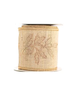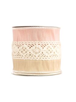 Bobina in tessuto animato beige/rosa con fascia di pizzo