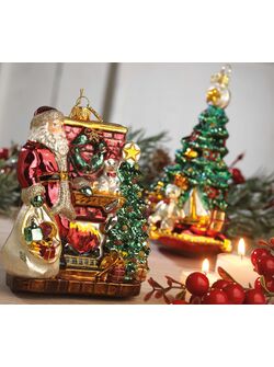 Santa al Caminetto in Vetro Decorato a Mano (con piedistallo)