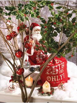 Centrotavola Innevato Decorato con Pigne/Bacche/Nastri Rosso Scuro