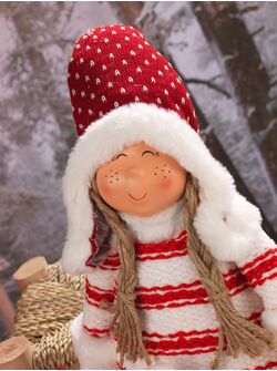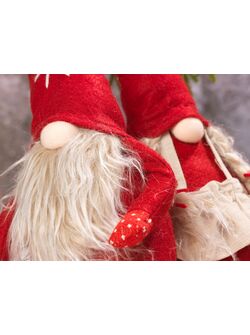 Set Gnomi Seduti in Tessuto Rosso con Cappello