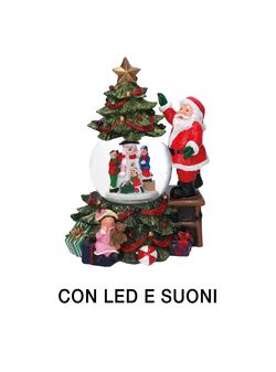 Palla di Vetro con Led e Musica - Babbo Natale e Albero
