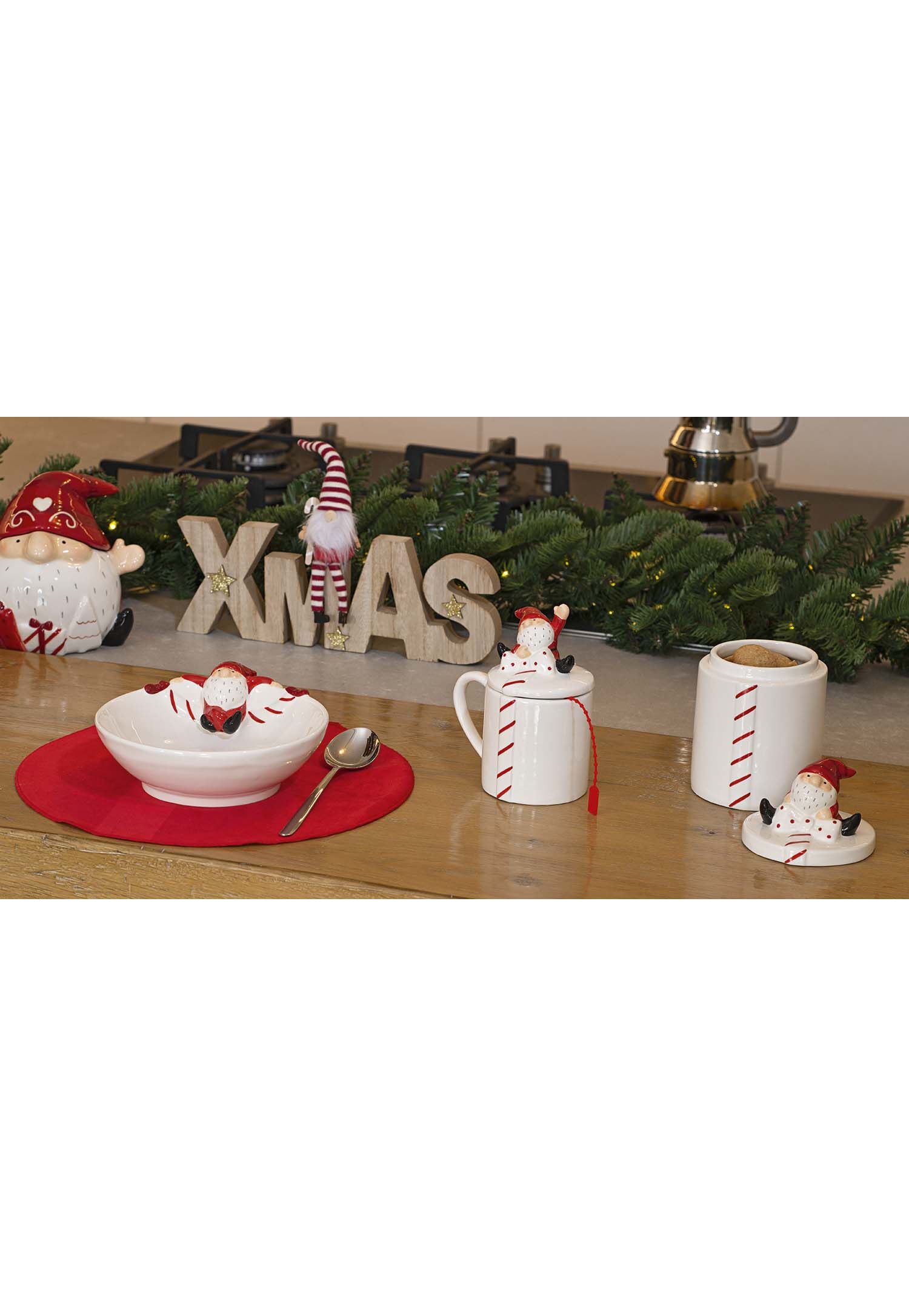 Barattolo in Ceramica Bianco/Rossa con Coperchio Gnomo