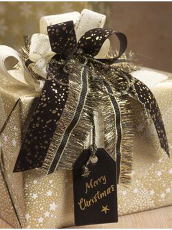 Nastro tessuto bordato marrone/oro con glitter Royal Night