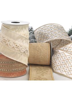 Nastro tessuto bordato bianco/oro con glitter Royal Night