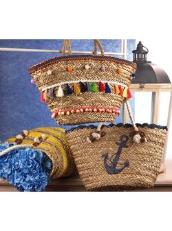 Borsa Tessuto Naturale a Righe Crema/Blu