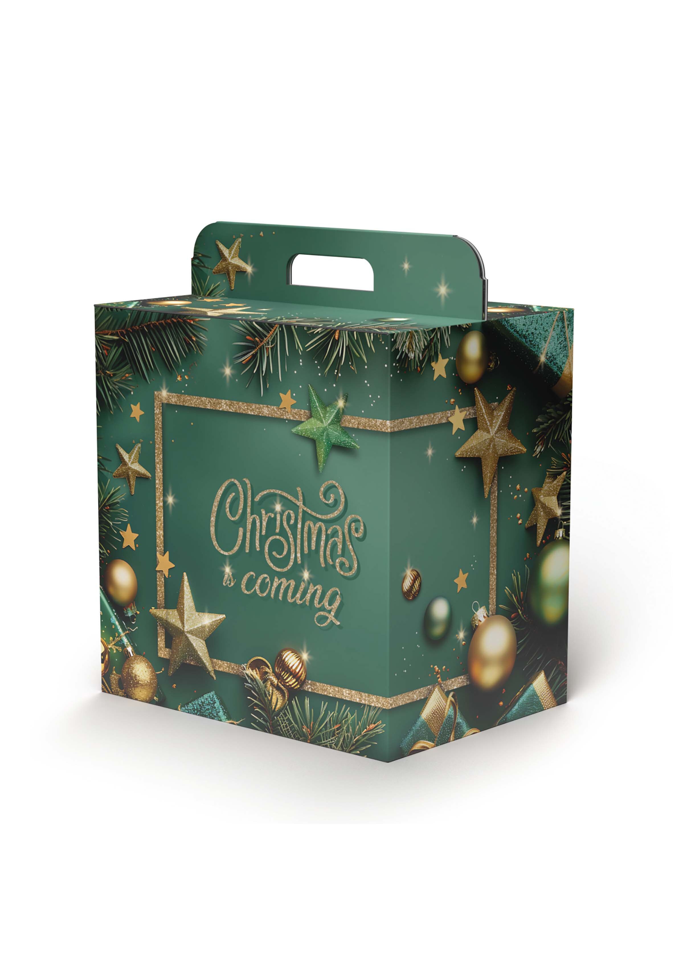 Misura cm 28x20,5x35h - 1 Bottiglia + 1 Panettone peso max 3,7 kg. Misura cm. 33x24x35 h. - 2 Bottiglie + 1 Panettone peso max 6 kg.