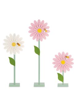 Set 3 Margherite Rosa e Bianche in Panno con Base