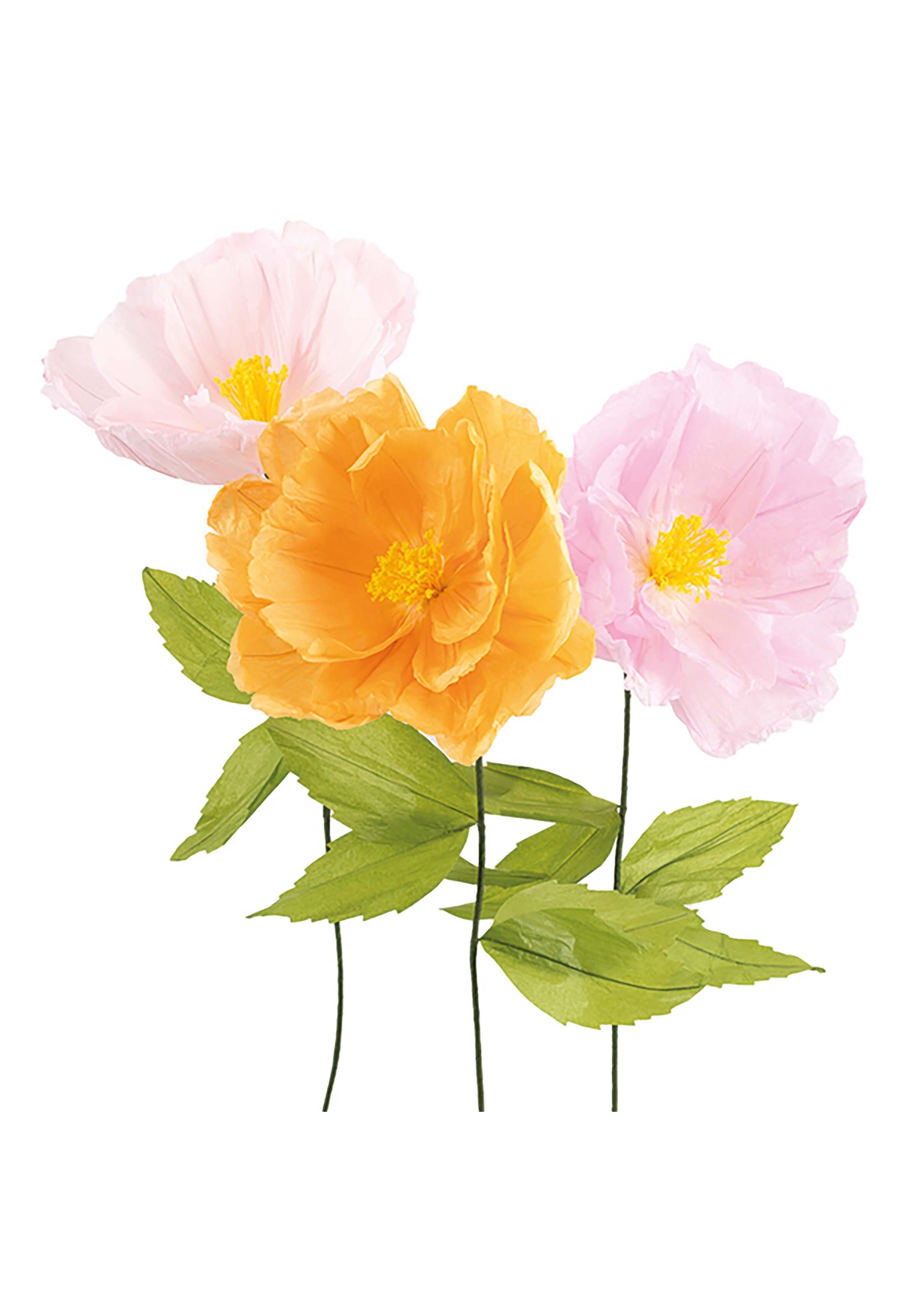 Set Fiori Medi in Carta con Stelo Rosa/Albicocca/Cipria