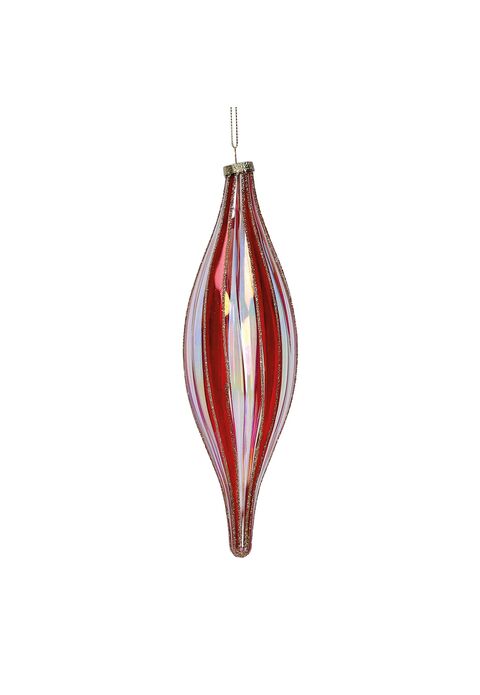 Conf. gocce lunghe in Vetro a spicchi Bianchi/Rossi con Glitter